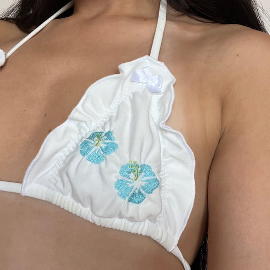 ハイビスカス Hibiscus Bikini Top in White and Blue