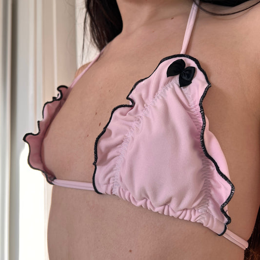 躑躅 Tsutsuji Bikini Top in Pink and Black