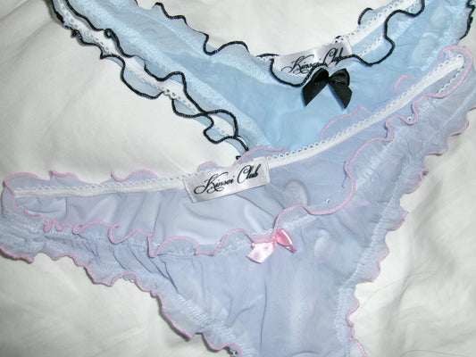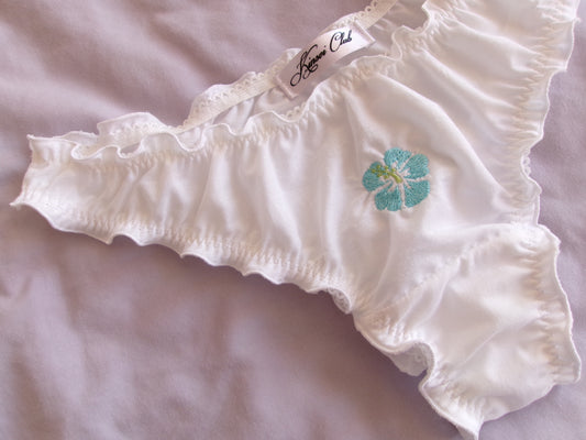 おやすみ Oyasumi Ruffle Thong in Blue and White