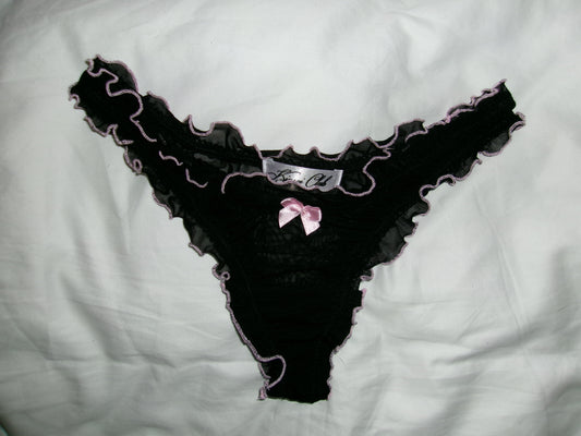 おやすみ Oyasumi Ruffle Thong in Black and Pink