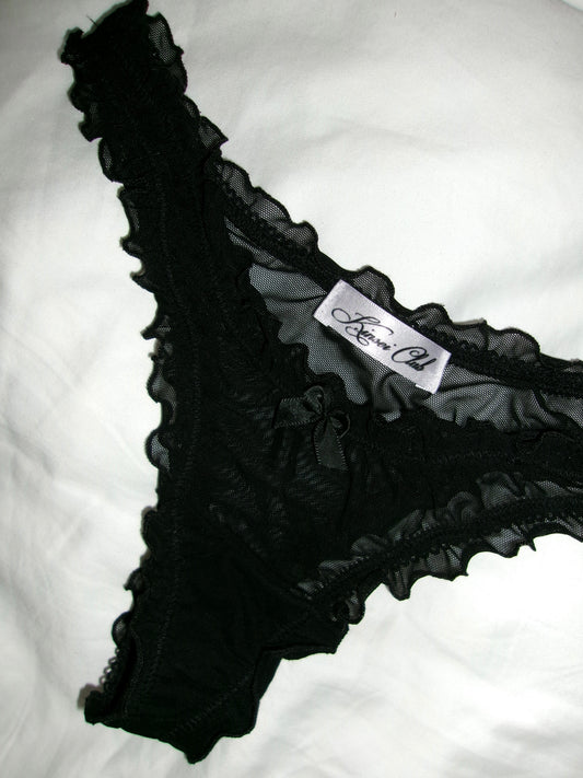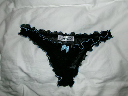 おやすみ Oyasumi Ruffle Thong in Black and Blue