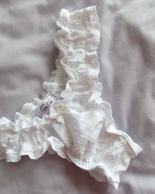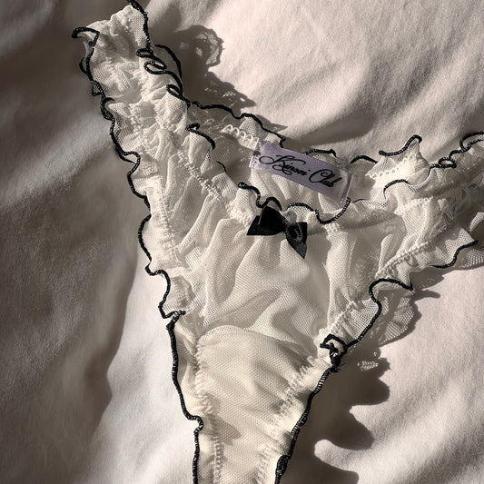 おやすみ Oyasumi Ruffle Thong in White and Black