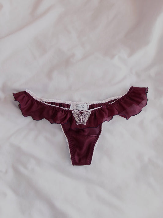 希望 Kibou Silk Butterfly Thong in Plum Red