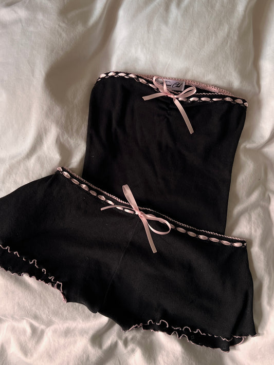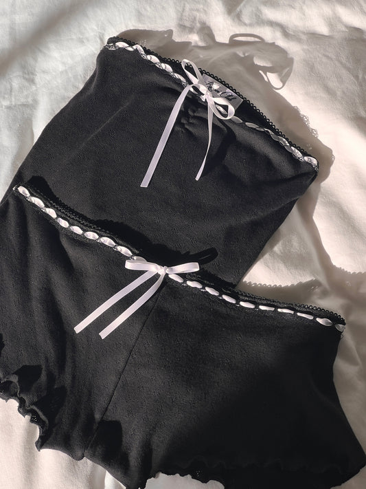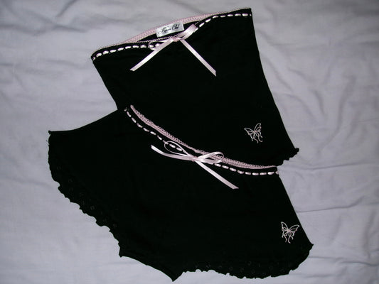 蝶々 Chouchou Butterfly and Bow Embroidered Pointelle Set Black