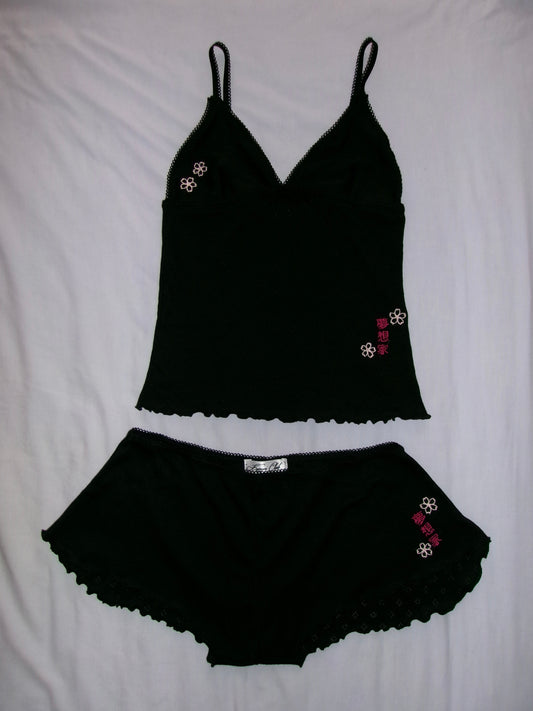 夜桜 Yozakura Embroidered Pointelle Set Black