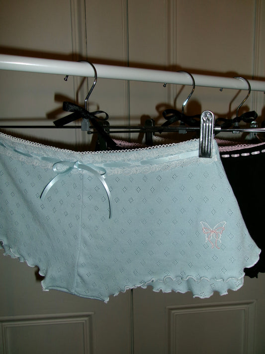 蝶々 Chouchou Butterfly and Bow Embroidered Pointelle Shorts Blue