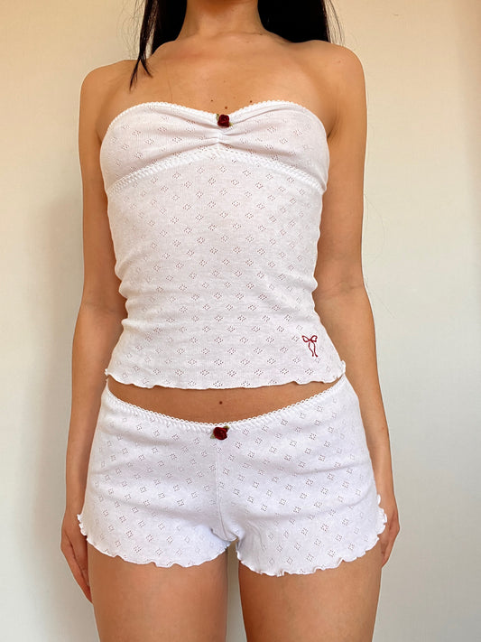 夜桜 Yozakura Embroidered Pointelle Shorts White