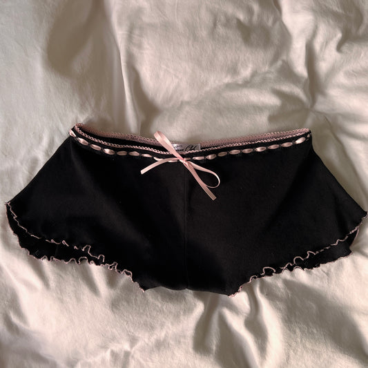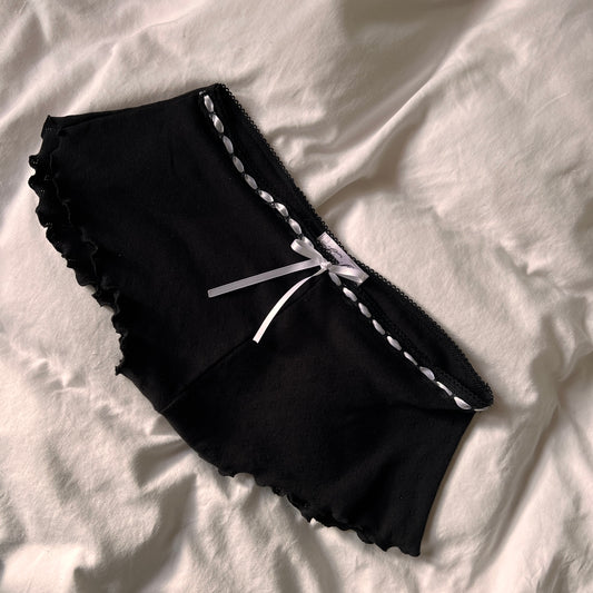 蝶々 Chouchou Butterfly and Bow Embroidered Pointelle Shorts Black