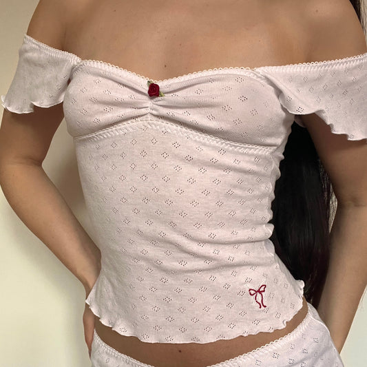 夜桜 Yozakura Embroidered Pointelle Top White