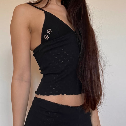 夜桜 Yozakura Embroidered Pointelle Top Black